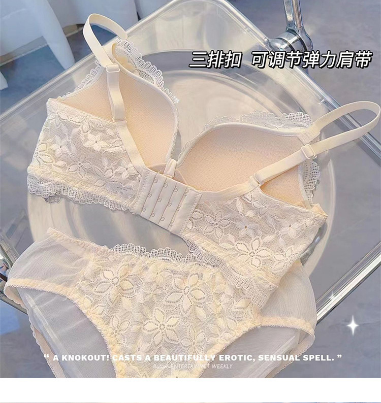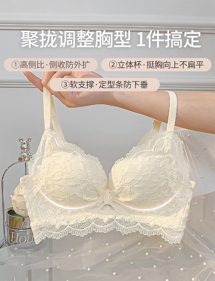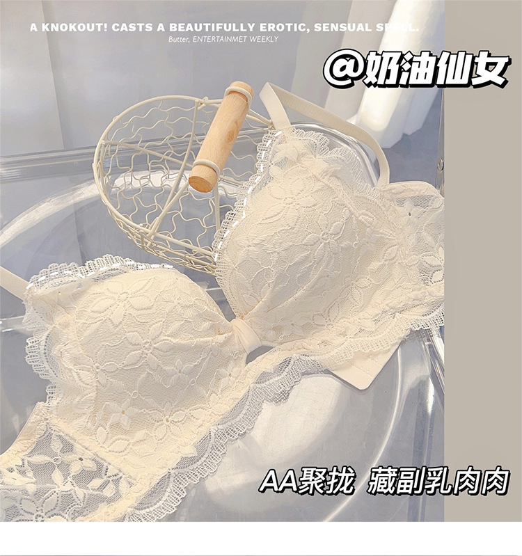 性感纯欲风法式蕾丝内衣女小胸聚拢无钢圈收副乳防下垂文胸罩套装