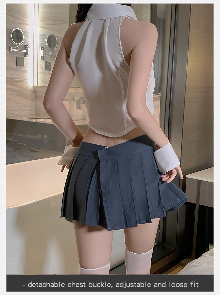 兔元素与蓝丝结合,融合制服与幻想系穿搭。甜美外表下暗藏挑逗气息,适合角色互动或私密穿搭。 Lust Lab 独家设定。