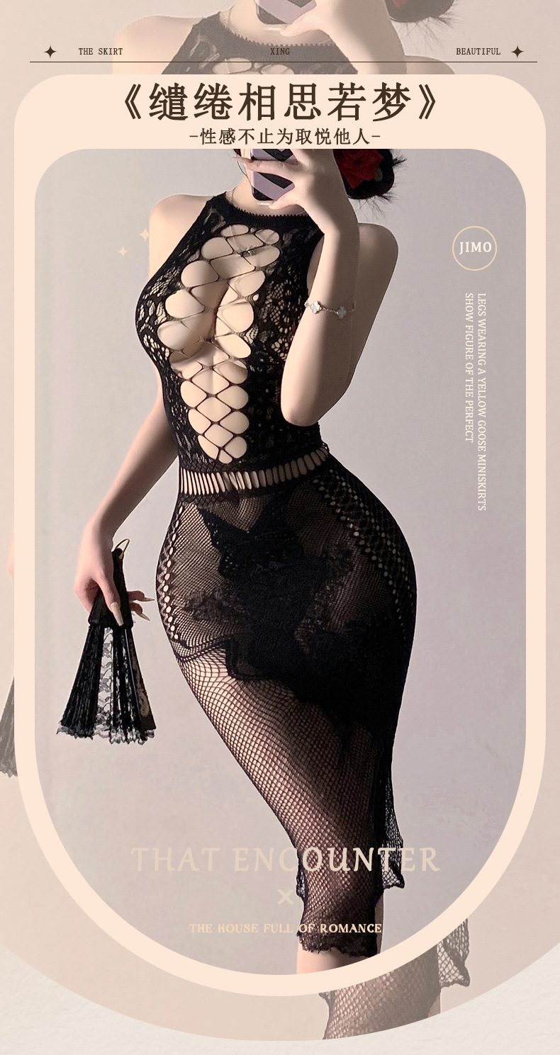 缕空露胸连身网眼长裙纯欲诱惑情趣网衣透视提花撕扯感网衣W01