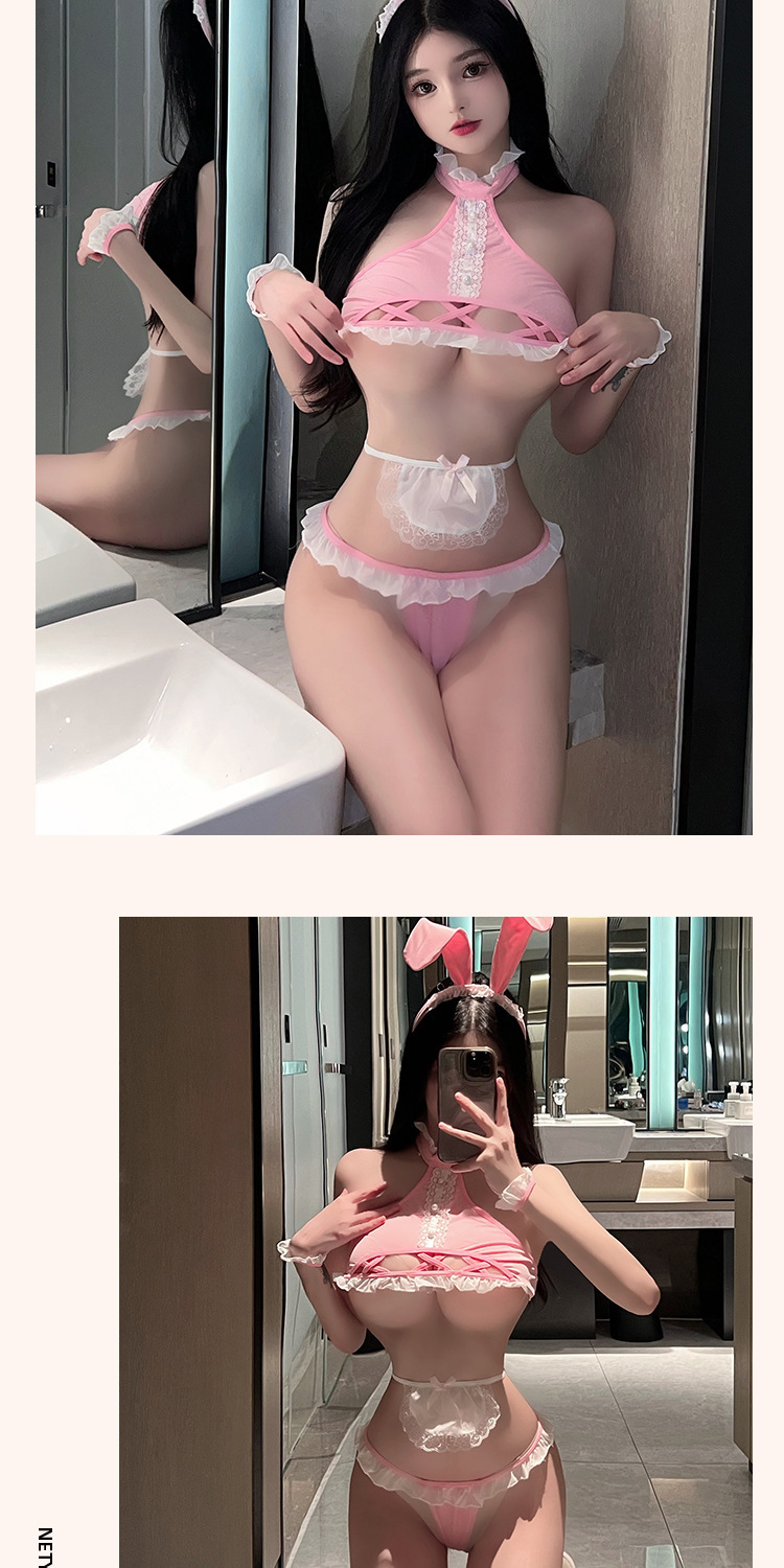 兔女郎元素结合蕾丝与绑带设计,营造甜美又挑逗的视觉氛围。适合作为情趣内衣或情侣互动调情道具。 情趣内衣之选,撩人而不过火。