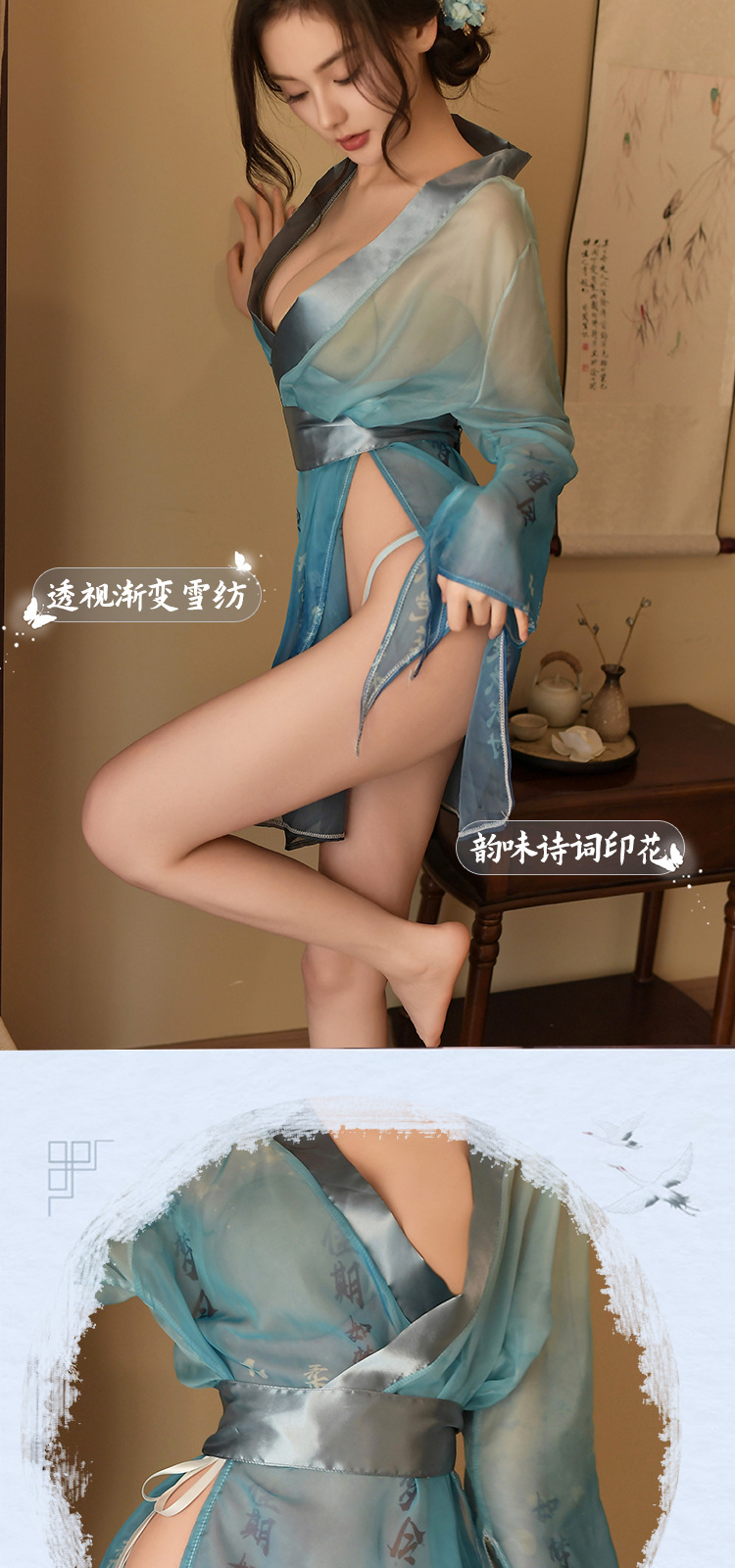 风花雪月诗词印花袍套装 2444