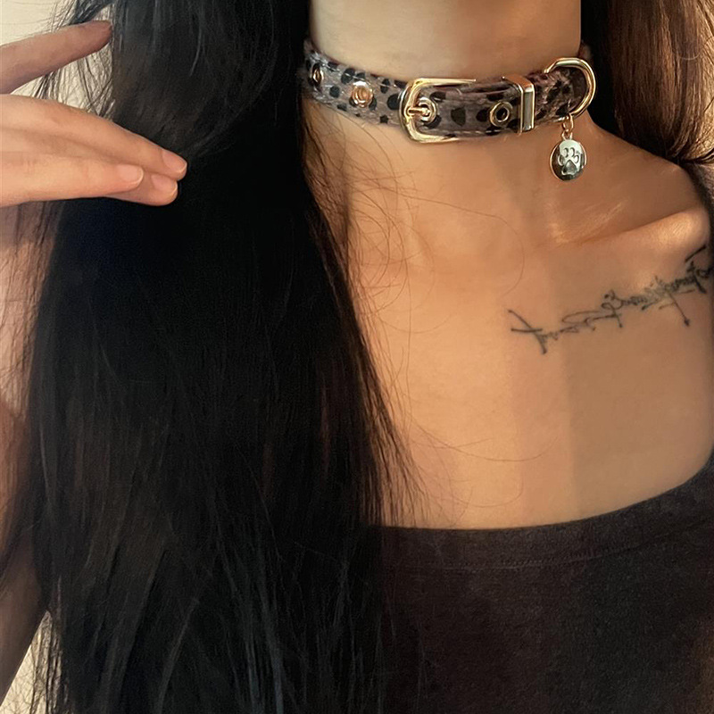 豹纹choker项圈千禧辣妹风咖色毛绒锁骨链小众颈链配饰